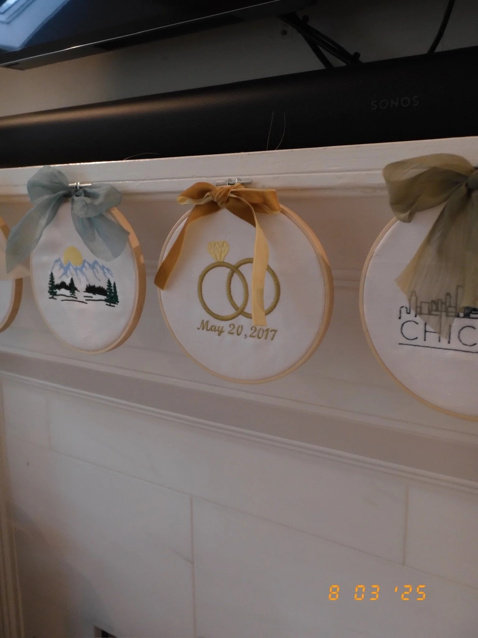 One of my favorite details was the mantle decor. Crabapple Threads Embroidery did a “timeline” of Jenna’s family. Each hoop represented a different milestone in their story- 10 total. Not to brag, but it made Jenna cry.
